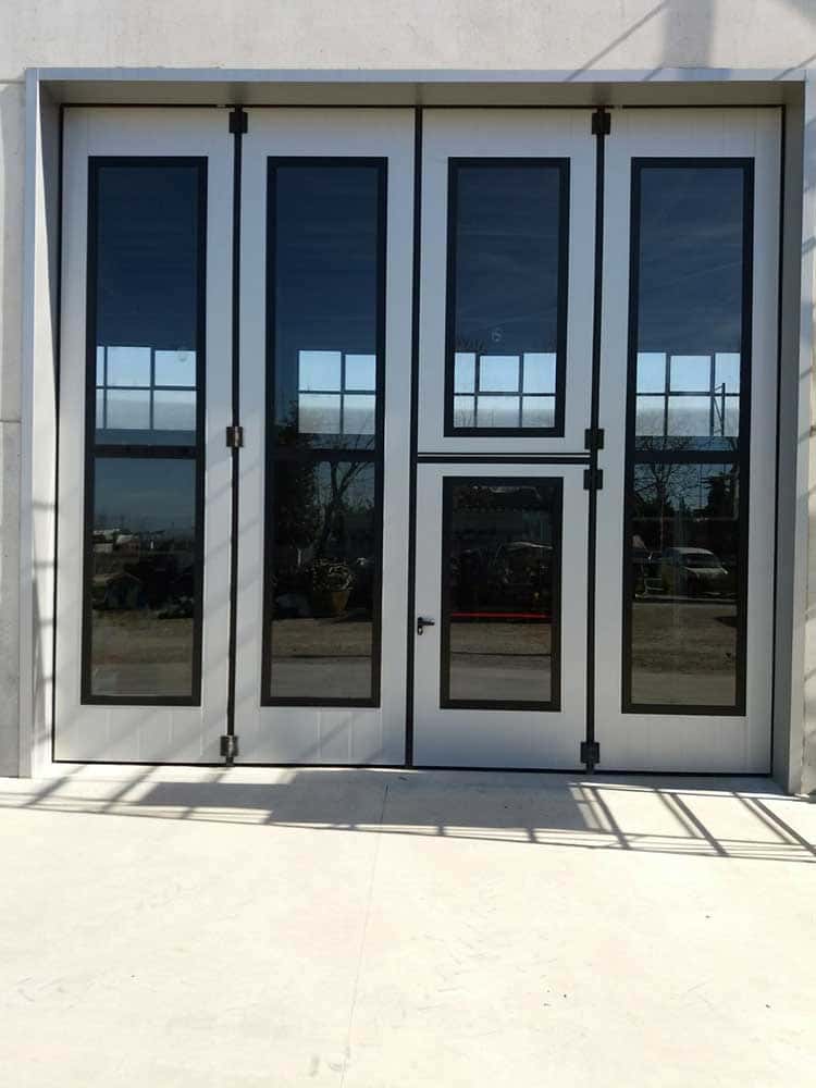 Telaio su tre lati assemblato in lamiera d’acciaio ad alta resistenza di 15/10 mm di spessore, con sede per guarnizione fumi freddi e zanche. Verniciata a polveri epossipoliestere finitura liscia RAL 7035 o goffrata in diverse tinte RAL.