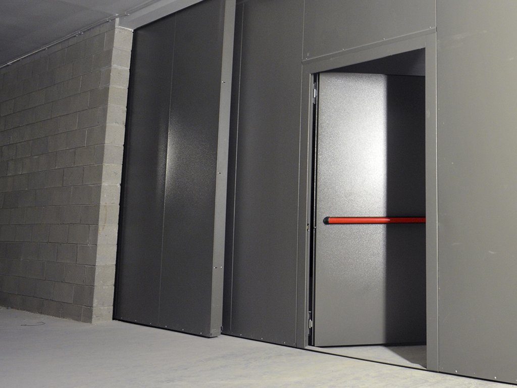 PORTE REI. Porta tagliafuoco REI 120 a norma UNI 9723, ad 1 anta battente in lamiera d’acciaio 7/10 mm, coibentata internamente con lana di roccia 180 kg/m3, spessore anta 64 mm.
